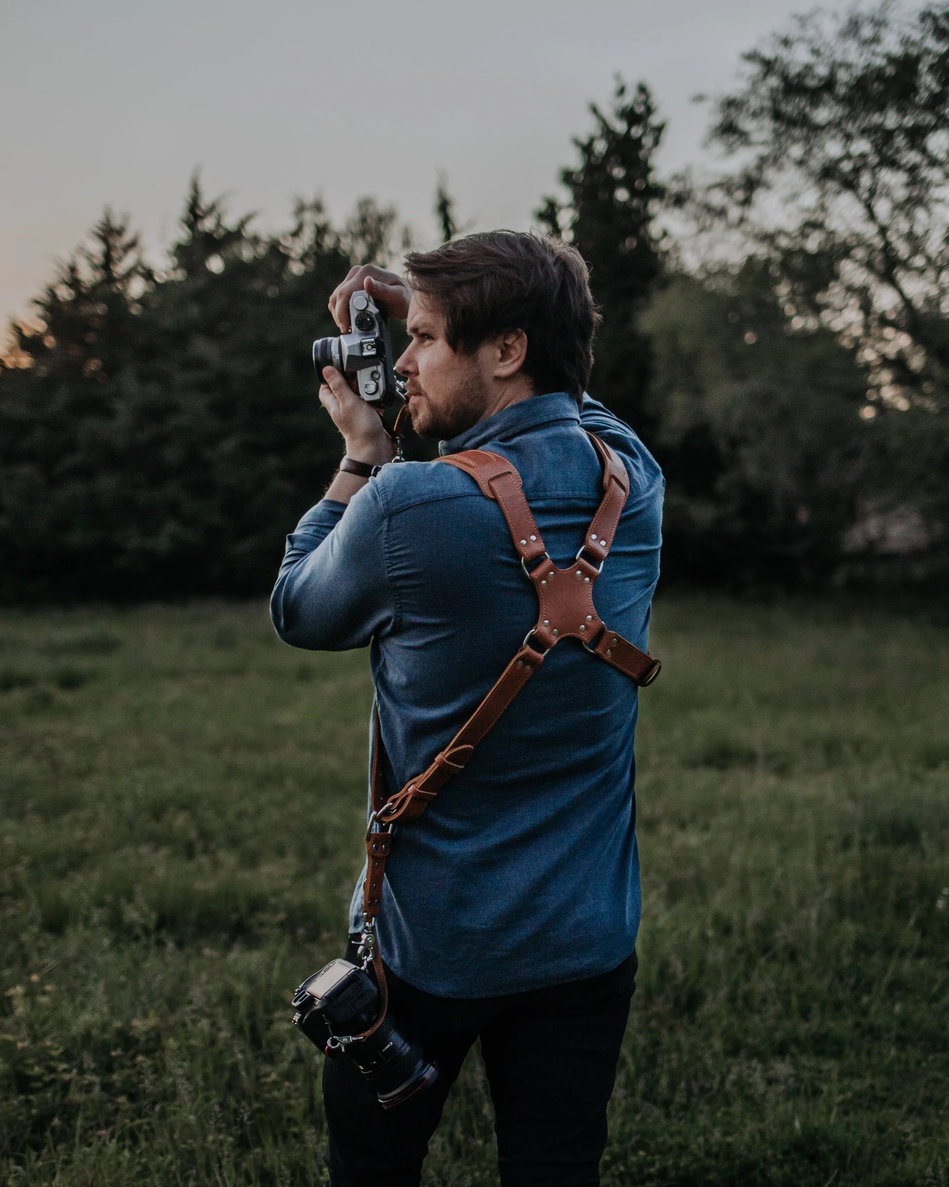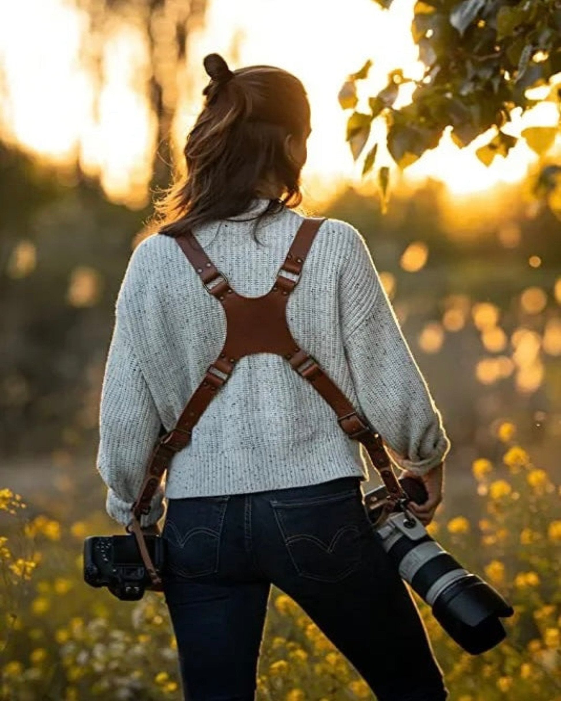 I bought this harness to alleviate the back pain I was getting from shooting with two cameras. I like how easily I can handle two cameras with this harness. I can swap between them without any issues. It is also comfortable (has shoulder pads) and stylish (the straps are thin). I highly recommend this one.