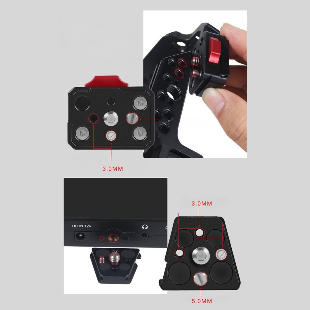 Équipée d'une vis filetée standard de 1/4", cette plaque est compatible avec les appareils photo reflex numériques Canon, Nikon et Sony, les supports de téléphone, les adaptateurs GoPro et d'autres appareils. Le verrou de sécurité fixe solidement votre équipement à la plaque, garantissant ainsi que votre appareil photo reste stable tout au long de votre prise de vue. De plus, avec une capacité de charge maximale de 11 lb/5 kg, vous pouvez être sûr que votre équipement est entre de bonnes mains.