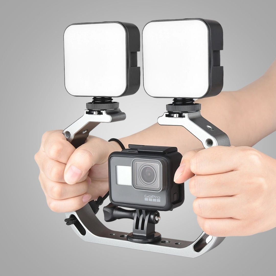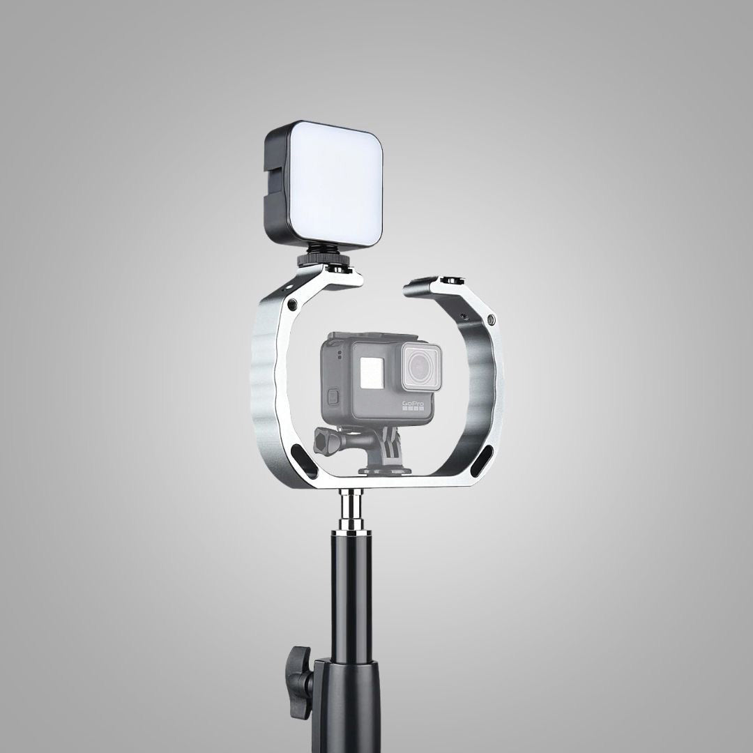 Comprend deux supports de griffe pour lampe LED GoPro, microphone, moniteur et autres équipements. Fonctionne bien avec la super combinaison GoPro (non incluse). Comprend un filetage 1/4" et un adaptateur de montage Action Cam, plusieurs filetages 1/4" et 3/8" sont conçus en bas pour monter d'autres accessoires, vous offrant une expérience de prise de vue plus pratique.