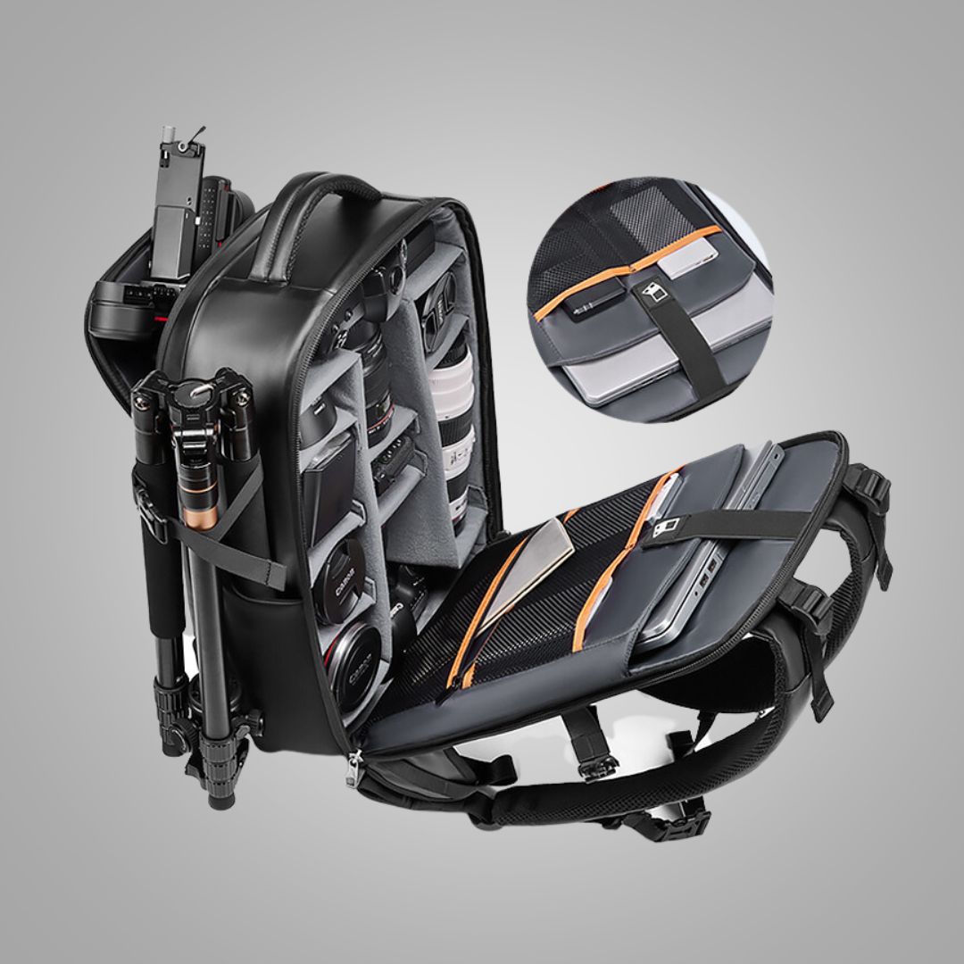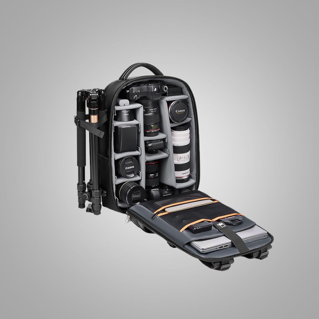 Ce sac à dos n'est pas n'importe quel sac ordinaire : il est spécialement conçu pour répondre aux besoins des photographes professionnels. Il est compatible avec les appareils photo reflex numériques, les objectifs, les trépieds, les drones et tous les autres accessoires tels que les flashes, les batteries, les cartes mémoire, les téléphones portables, etc. Vous n'aurez plus à craindre de laisser quoi que ce soit derrière vous avec ce sac à dos !
